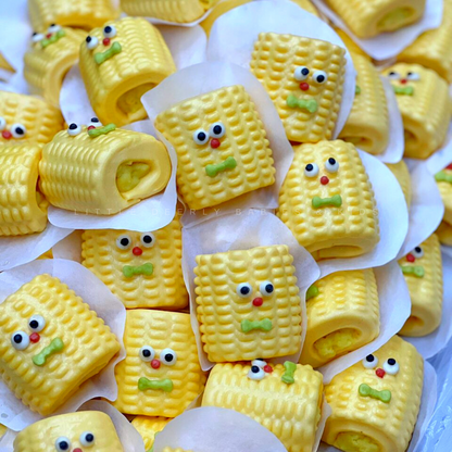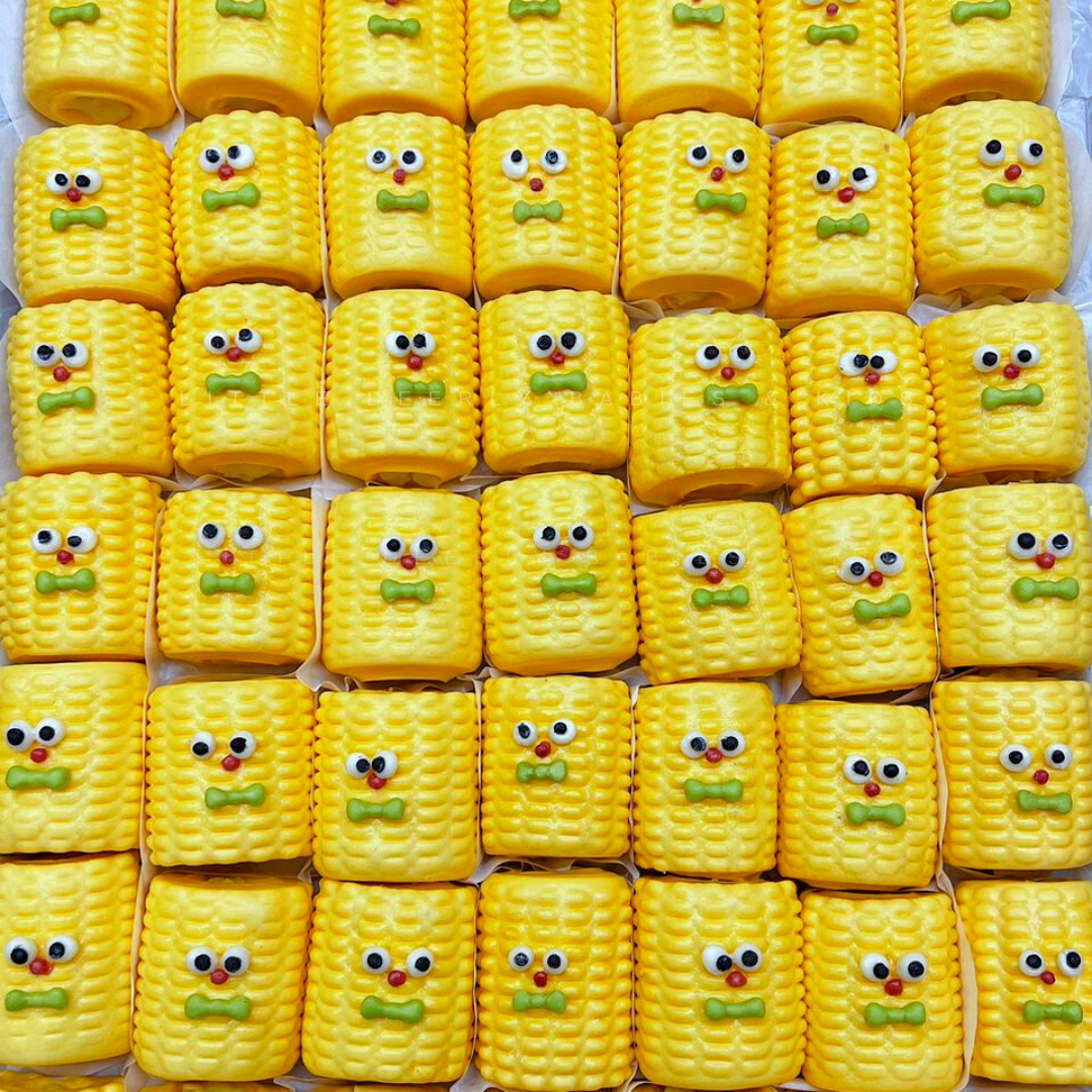 Adorable corn-shaped bun with a creamy custard filling—sweetness in every bite! 🌽🍮