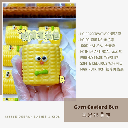 Our Corn Custard Bun is crafted with a soft, fluffy bun filled with a rich custard that blends perfectly with the natural sweetness of corn. The fun, corn-shaped design makes it irresistible to little ones, turning mealtime into a delightful experience. Each bite is a perfect balance of creamy custard and sweet corn flavor—delicious and nutritious.